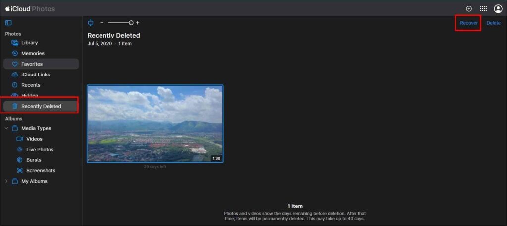 - Go to the Recently Deleted >> select the photos >> click Recover.