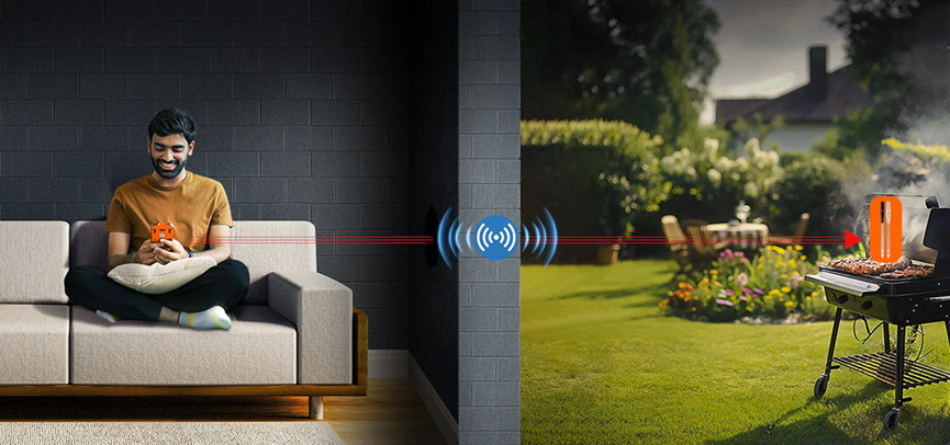 With dual sensors in each probe, it measures both internal and ambient temperatures simultaneously. The RF tech means no lag, no Bluetooth dropout, and no interruptions from Wi-Fi noise. And because it’s 100% wire-free and IPX8 waterproof, it’s as rugged as it is refined.